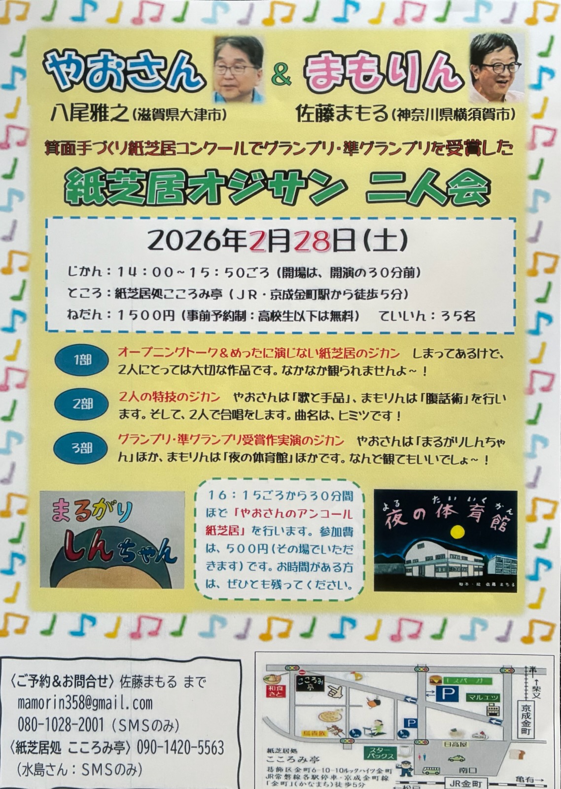 「やおさん&まもりん紙芝居おじさん二人会」が開催されます。