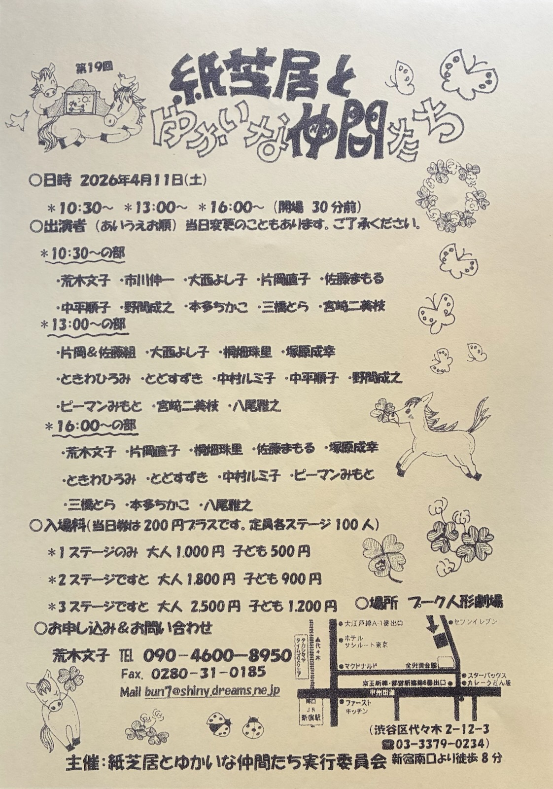 第19回「紙芝居とゆかいな仲間たち」開催のお知らせ
