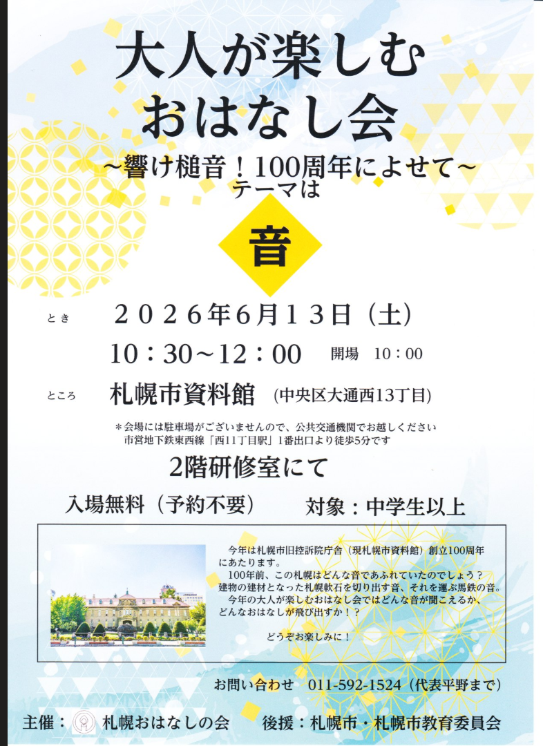 ①会/イベントの名称 ②開催予定日時 ③会場 ④語り手 ⑤参加費 ⑥対象