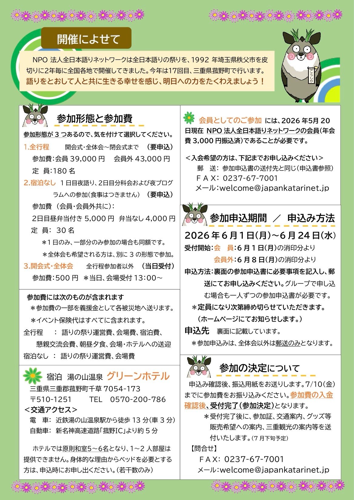 申込受付:会員(6月1日の消印より) 会員外(6月8日消印より)